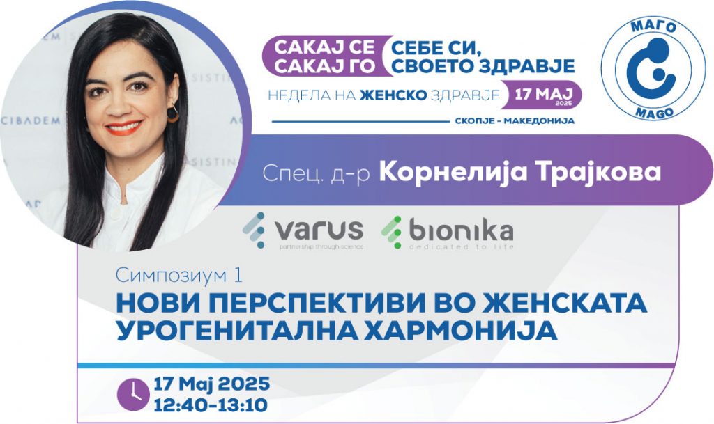 12:40 – 13:10 Симпозиум – „Нови перспективи во женската урогенитална хармонија“ – Спец. д-р Корнелија Трајкова, VARUS