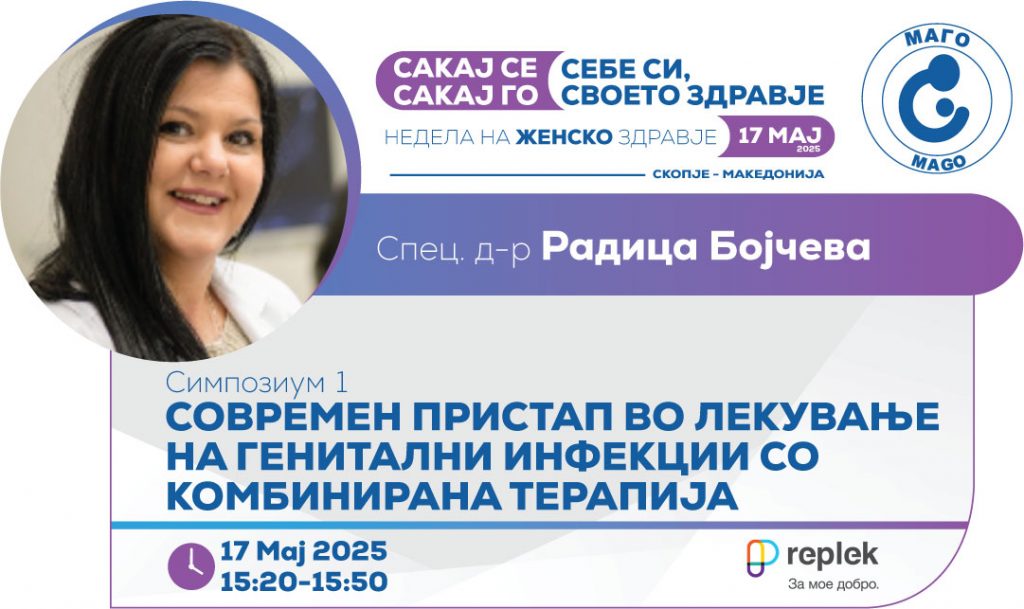 15:20-15:50 Симпозиум -„Современ пристап во лекување на генитални инфекции со комбинирана терапија“- Спец. д-р Радица Бојчева, Реплек
