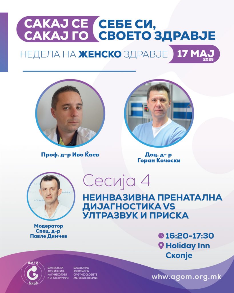 16:20-17:30 “Сесија 4 – Ултразвучен фетален скрининг и PRISCA VS Неинвазивна пренатална дијагностика”